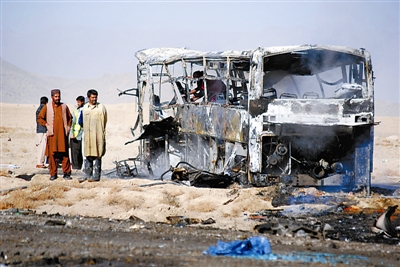 12月30日,在巴基斯坦西南部城市奎达附近的默斯东地区,人们查看爆炸现场。