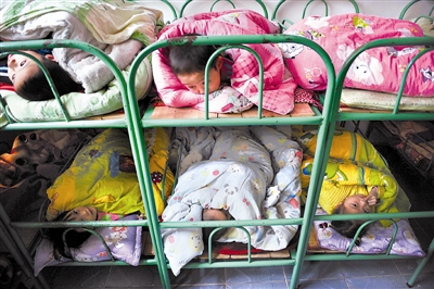 1月6日,广西南宁,一所农民工子弟幼儿园的孩子们正在午睡。