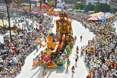 当地时间2013年1月6日,是哥伦比亚帕斯托市黑白狂欢节大游行最后一天。整个城市沉浸在欢乐的海洋里。黑白狂欢节象征所有市民的平等与融合。阿健 供图