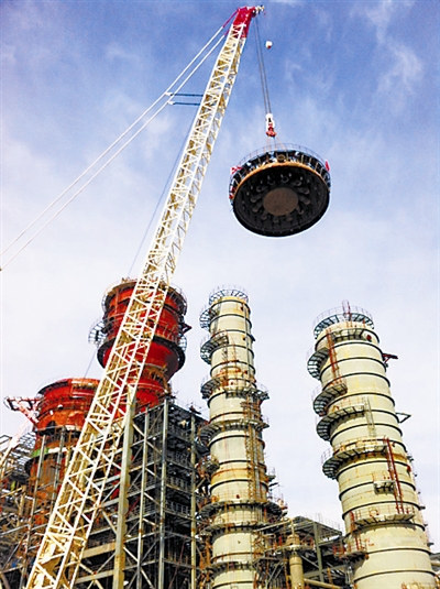 1月8日,在陕西榆林靖边化工园区内,由陕西化建承建的陕西延长中煤榆林能源化工项目中的150万吨/年催化裂解制乙烯装置反应器顺利封顶,标志着我国最大的石油化工综合性装置的主体工程已经落成。