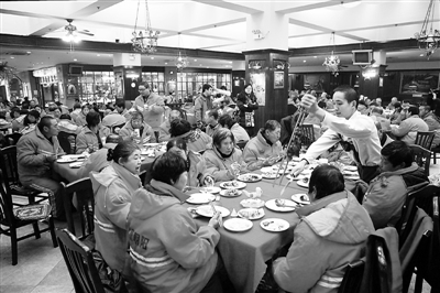 1月9日,长春市朝阳区政协举办“爱心惠民生”活动,将268双棉靴送给环卫工人,并请环卫工人们吃一顿美味佳肴。
