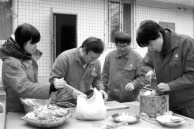 1月13日,四川自贡采气作业区工会干部利用周日休息时间来到观音气田音10井站与一线员工就工作、生活、学习上遇到的问题进行座谈。对员工提出的每个问题,作业区工会干部都认真记录。当天,作业区领导和工会干部还走进厨房,为井站员工做了一顿丰盛的午餐。本报通讯员 谭周德 摄