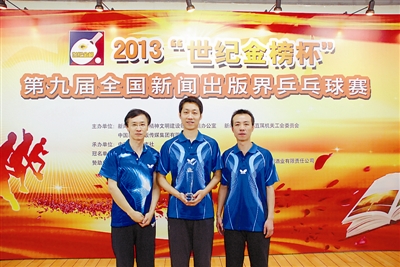 日前,由新闻出版总署精神文明建设领导小组办公室,新闻出版总署直属机关工会委员会、中国新闻出版传媒集团有限公司主办,中国出版杂志社承办的2013“世纪金榜杯”第九届全国新闻出版界乒乓球比赛在京举行。46个代表队共210名运动员参加比赛。最终,第九城市队获得冠军,上海世纪出版集团获得亚军,工人日报一队获得团体第三名。图为工人日报代表队合影。祝步 摄