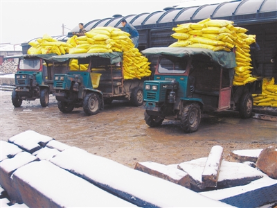 1月8日,从浙江省临平火车站运来两个车皮的过节物资,很快运到湖南省怀化火车南站的地方商业专用铁路线。附近农民工很快组成地方汽车拖拉机队,顶风踏雪“门对门”及时将到达的过节物资送到不通火车的周边贫困县山区的苗岭侗寨壮乡土家少数民族居住地一带千家万户交付,当地群众笑逐颜开,称“草根节日物资无轨车”解了燃眉之急。