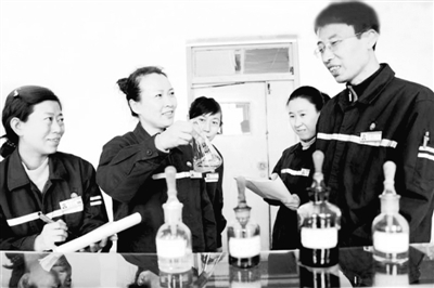 新年伊始,中石油抚顺石化公司腈纶厂质检中化班员工有了“班组讲堂”。1月14日,在该班中化分析室内传出辩论声:“滴定管捏住上端举起,让液位与视线平行”,这是班长崔桂新(左二)在和大家开展“班组讲堂”的一个环节“岗位辩法”,只要工作中有疑点、业务上有疑问,“班组课堂”就可随时随地开讲,让大家在操作中切磋技能,就某个点展开辩论。组员们觉得这种培训法易懂善记忆,挺受用。中化班组负责分析进厂原料和出厂成品的工作,20多种危险化学品日取样10余次,日做样40多项次分析,准确率达100%。 张春胜 摄