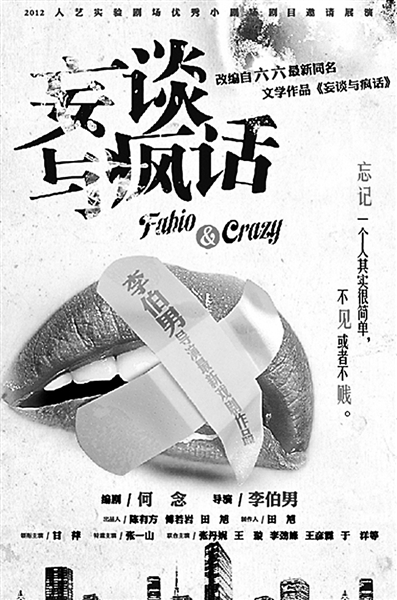 新年贺岁,1月22日—2月3日在北京人艺实验剧场将倾情上演导演李伯男戏剧作品《妄谈与疯话》。这部话剧根据作家六六的同名作品改编,集结了李伯男、六六、何念、张一山、甘萍等影、剧、歌三界人士,气质上不仅延续了李伯男一贯对都市情感的关注,也将更加注重对于生活的思考和追问。