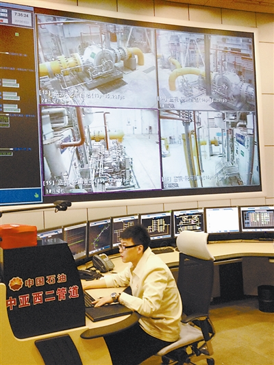 1月21日晚上,负责中亚管道的调度员邰军正在监控管道压力、流量变化情况,研究生毕业的他还要写俄文报表。