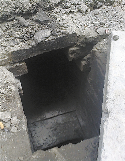 当天下午,曹红梅和几个邻居出来散步,路过永平浴池,看见浴池路边公共下水道的水泥板被搬开,两个中年男人拿着工具在凿孔。几个人没有在意,只当他们在修什么东西。