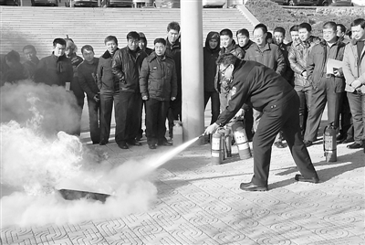 锦州铁路公安处为全面提高铁路各单位消防工作能力和水平,完善和提升消防干部的业务素质,举办由消防主管领导和专(兼)职消防干部等65人参加的培训班,普及《消防法》及消防安全常识,确保春运消防安全。图为该处消防支队业务干部现场进行灭火演练。