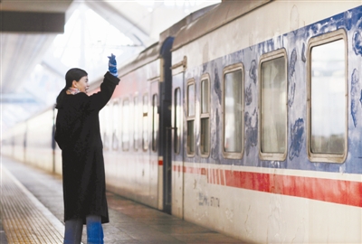 早上9点48分,北京铁路局首趟临客列车北京至哈尔滨东T71次发车,一位在京打工者送别爱人和孩子回家。