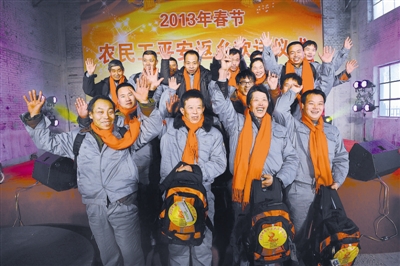 为贯彻落实中央转变作风的要求,欢送仪式从简,但给农民工们准备的“年货”却一点都不少:吃饺子、看演出、送“大礼包”。烤鸭、保温杯、围巾、吉祥物……任保会神气地展示着工会赠送的“大礼包”。十几个小时后,怀揣4万多元“年薪”的他,就能抵达家乡河南平顶山,见到阔别一年的90岁老母亲了。
