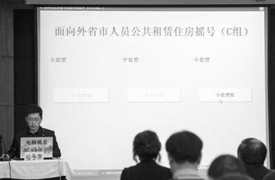 1月25日,工作人员准备进行面向外省市人员公共租赁住房摇号。