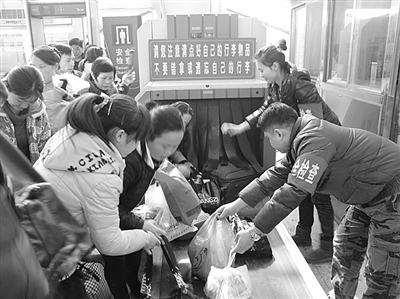 1月26日,湖南怀化火车站当班的农民工查出旅客携带的管制刀具、砍刀、发胶、打火机气体、仿真手枪等危险品40件。据不完全统计,30多名以女子为主的农民工安检员上岗6天,查出危险品261件。他们的安检岗位被称为“春运旅客‘红哨岗’”。