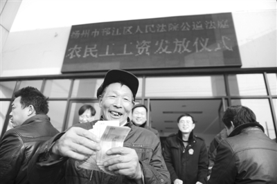 据了解,江苏省扬州市邗江区公道镇人民法庭接到71名农民工反映一建筑工地长期拖欠工资,当即立案并联合多部门追回了这71名农民工被拖欠的工资。 新华社发 (司新利 摄)