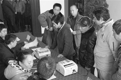 1月25日,河北省遵化市欠薪单位在核算农民工的工资数额。