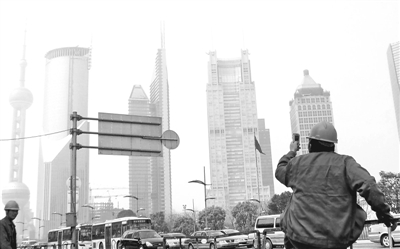 一农民工在拍照。绍常 摄