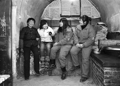 在陕西省靖边县巡检司村一户农民家里,孟宁丽(右一)和张丽(右二)和学生攀谈了起来(1月26日摄)。