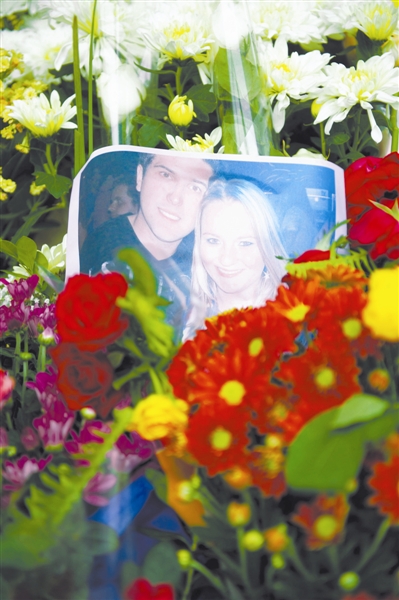 1月29日,在巴西圣玛丽亚,遇难者的照片被放置在“吻”夜总会门口的花丛中。新华社记者 翁忻旸 摄