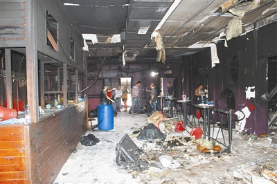 巴西警方发布的拍摄于28日的发生火灾的夜总会被烧毁的内部景象。CFP 供图