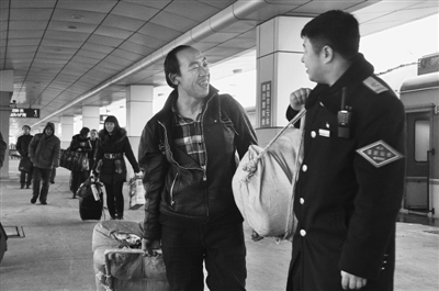 2月3日,正值农历小年,从内蒙古返乡过年的农民工张付潮在安阳站一下车,就对外面的雨夹冰雹发了愁,这时,车站“阳光服务台”的陈建峰及时走上前来,接过了他手中的包。春运开始后,因为“阳光服务”,安阳站客运职工与不少旅客成了朋友。