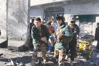 2月3日,在伊拉克北部基尔库克省首府基尔库克市,救援人员在爆炸现场工作。