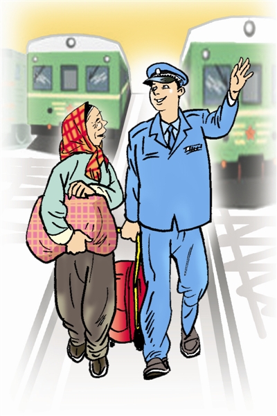 老屈说,当你心中装着旅客的时候,就总能发现需要帮助的对象,并及时伸出援助之手,旅客也会把你当自己人一样找你帮忙,这样做人是累了点,但心里舒服,因为通过这些点滴小事帮助我们实现了人生的价值。(漫画 法明)