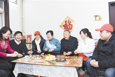 2月6日(腊月二十六),冀中能源股份公司邢东矿的青年志愿者来到河北省道德楷模王腊旭(左二)家,一起帮着贴春联、贴福字、包饺子,和劳模一起,共庆新春佳节。