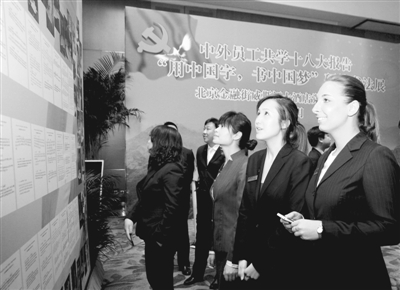 在酒店工作中,很多中方员工不懂外语,而外籍员工不会汉语,中外员工之间产生了沟通障碍。如何将中外籍员工组织到一起,通过参与活动进行交流沟通呢?酒店党支部绞尽脑汁,创建了一系列利用图像语言拉近员工距离、进行交流沟通的活动。2012年底,为了让酒店员工包括外籍员工,都能学习党的十八大报告,贯彻十八大精神,酒店党支部和工会经过准备,在600多名员工中搞了一次中外员工硬笔书法比赛,比赛的内容就是每人抄写100个字的十八大报告。最后,把每个人的抄写连贴出来,就是一篇完整的十八大报告。这事儿,放中国籍员工身上轻而易举,写字谁不会?可写好却未必容易,他们干这事比的就是功力;对外籍员工来说,就并非易事。与其说让他们比着写,不如说是让他们比着画,看谁画得更像。当时,来自英国、德国、法国、加拿大、荷兰、马来西亚、墨西哥等国的8名外籍高管及员工参与了十八大报告的书写,结果是一个比一个画得好。