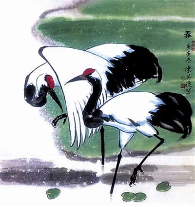 鹤之和谐——春(国画)陈其旋