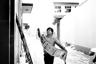 大年除夕的鞭炮声中,来自河北邯郸的22岁农民工杨建涛忙活着帮老板家贴挂钱、春联。