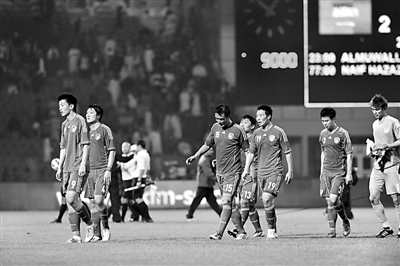 图为2013年2月6日,中国队球员在沙特阿拉伯达曼举行的亚洲杯预选赛结束后离场的资料照片。新华社发
