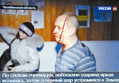 这张2月15日拍摄的俄罗斯国家电视台24频道视频截屏显示,陨石坠落导致一名当地居民受伤。 新华社发