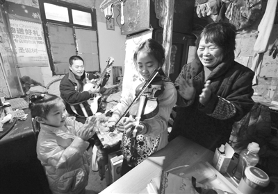 “我们一家最大的新年愿望就是尽快搬进新房,然后把新房刷得很白很白;到时我开个家庭独唱音乐会,叫儿子和孙女给我伴奏!” 幸福的笑容挂在杨冬梅的脸上。(肖雨杨 摄影报道)