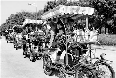 2月17日,“新福州人”在福州南江滨公园骑休闲自行车游玩。当日,为让春节期间坚守岗位的外来务工人员共享“有福之州”的温暖,福建福州市举办了“新福州人看福州”新春团圆活动,邀请他们免费逛福州,并发放爱心礼包。新华社记者 林善传 摄