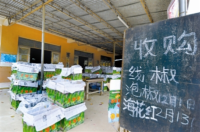 2月20日,在琼海市一瓜菜收购站,用来装辣椒的空箱子堆放在地上,但鲜有菜农前来出售辣椒。