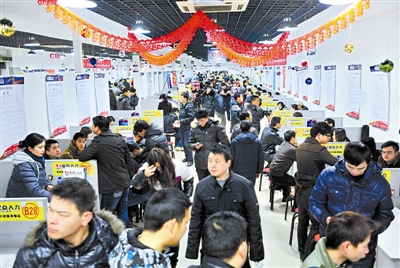 武汉市“春风行动”2013年促就业现场招聘会现场(2月21日摄)。当日,湖北省武汉市“春风行动”2013年促就业现场招聘会在起点人力资源市场举行,280余家用人单位到现场招聘,吸引6000余人前来应聘。新华社记者 肖艺九 摄