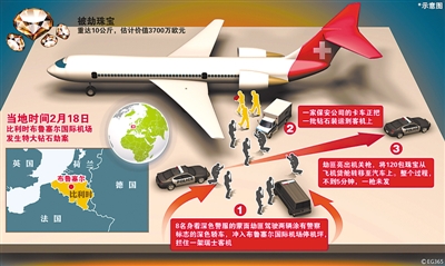 2月18日,比利时首都布鲁塞尔机场发生钻石大劫案,价值3700万欧元的钻石被劫走,劫匪还抢走了一些黄金,总价值高达3.5亿欧元。安特卫普世界钻石中心发言人卡罗琳·德沃尔福19日说,这是迄今最严重的钻石劫案之一。