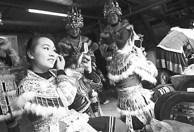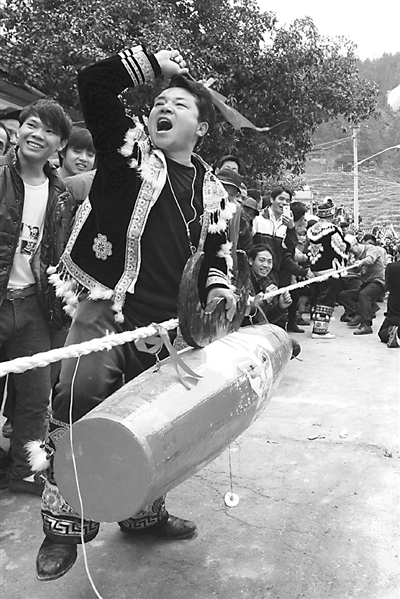 黔桂接边地的广西融水县杆洞乡举行首届百鸟衣芦笙拉鼓节,当日正是农历蛇年正月初八,来自贵州、广西两地各族群众参加或观看了芦笙表演和拉鼓比赛等文体活动。(龙涛/CFP)