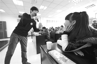 2月23日,“周末学堂”志愿者、清华大学毕业生吕政良在为学生上第一课“何以为学”。