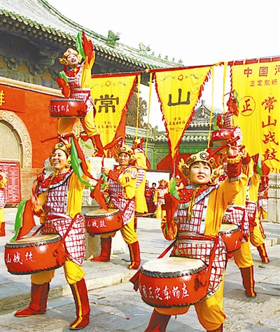 常山战鼓被赞誉是“所见到的鼓类中最富特色、最激动人心、鼓点最丰富的鼓队。” 正定东杨庄战鼓队曾1990年应第十一届亚运会组委会特邀,参加了“亚运会”艺术节开幕式表演。