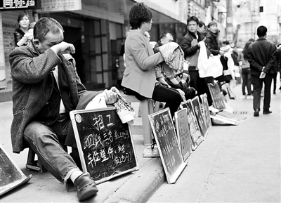 2月24日,农历正月十五元宵节,广州市一个城中村,这里遍布着各种小工厂,由于节后出现用工荒,招工十分困难,许多小工厂在元宵节的当天走上街头“抢工人”。张峰 摄