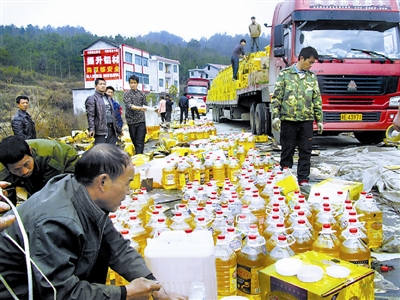 数千桶食用油散落 村民帮忙悉数找回