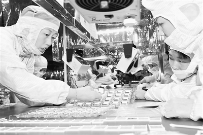 湖北宜昌市夷陵区三峡伟志光电公司工人对加工生产的LED彩屏进行检查。张国荣 摄
