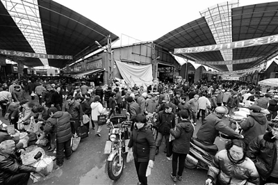 曹安市场开业于1992年,是上海距离中心城区最近的一家大型初级农副产品批发市场,共有摊位1958个,以“批零同售”、价格优惠著称。近年来,曹安市场配套设施相对落后,市场管理成本不断提高,周边居民投诉不断。3月1日,该市场将正式停业关闭。 新华社发 (赖鑫琳 摄)