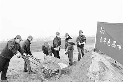 2月17日,一群头戴小红帽的青年志愿者在河南油田井楼油矿第八生产区的共青共建路上忙碌着。这条路通往附近油井和村庄,晴天尘土飞扬,雨天泥泞不堪,村民们最怕走在这条路上。井楼油矿青年志愿者们自发地在这条主干道上铺垫出一条4公里长的共建路,并定期进行维护,这条路成为企地之间的“连心路”。谢玉文 李爱国 摄
