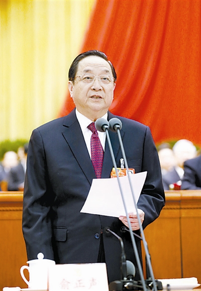 俞正声主持开幕会。新华社记者 鞠鹏 摄