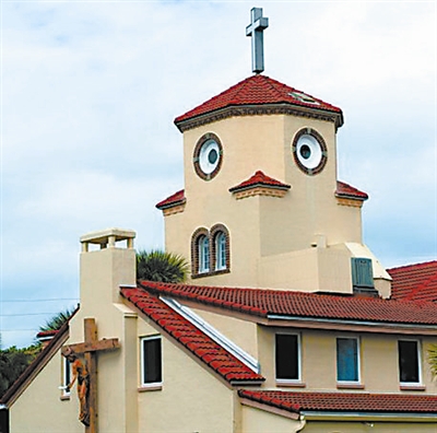 美国佛罗里达州马德拉海滩上的一家教堂因外形酷似小鸡吸引了大量游客,路上的行人经常情不自禁地为之驻足。当地渔民则把它当作出海时的指南针。