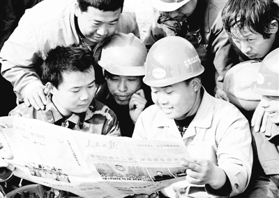 “快来看,两会召开了!”听到这声喊,正在施工工地工间休息的中铁十八局集团五公司的农民工们迅速聚拢过来,争看两会的有关新闻。这些农民工兄弟来自山东、河南和四川等地,他们希望政府能够提供更多的就业机会和解决他们异地医疗和养老保险问题,妥善解决农民工子女的教育问题,使他们的子女能够充分享受到城市的教育资源和与城市孩子平等的上学就业机会。因此,他们十分关注两会进展情况,尤其是政协委员的提案。不仅派专人收集,而且还利用工余时间传阅。龙艳 陈维德 摄