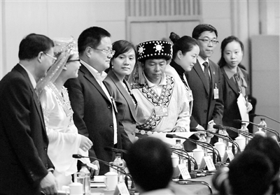 今天下午,十二届全国人大一次会议新闻中心举行“一线工人农民代表谈履职”为主题的记者会,邀请6位一线工人农民代表就相关问题回答中外记者提问。发布会从农民工代表、上海华日服装有限公司工会主席、销售主管朱雪芹“晒出”履职清单开始,6位代表一一讲述了自己的履职“新路”。