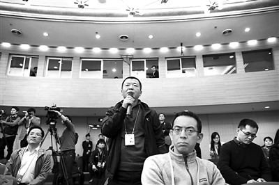 本报记者康劲在记者会上提问。本报记者 于文国 摄